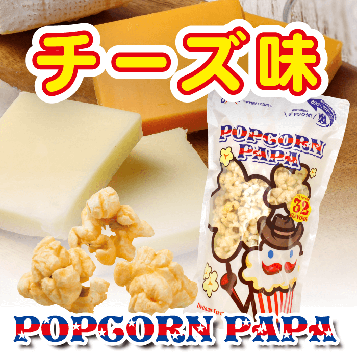 原材料名:コーン(アメリカ産、遺伝子組み換えでない)、食用こめ油、コーンポタージュ風シーズニング(砂糖、クリーミングパウダー、スイートコーンパウダー、食塩、たん白加水分解物)、ナチュラルチーズ(生乳、食塩)、食塩、デキストリン/香料、着色料(カロテン)、調味料(アミノ酸等)、ケイ酸カルシウム、pH調整剤、乳化剤、甘味料(ステビア)、(一部に乳成分・大豆を含む)