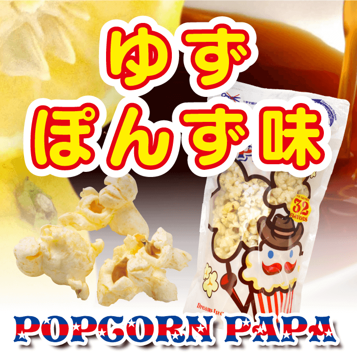 原材料名:コーン(アメリカ産、遺伝子組み換えでない)、食用こめ油、ポン酢風シーズニング(粉末醤油、砂糖、粉末酢、ホエイパウダー、食塩、ゆずパウダー、鰹節エキス、酵母エキスパウダー、昆布エキス)、食塩、デキストリン/香料、着色料(カロテン)、調味料(アミノ酸等)、酸味料、ケイ酸カルシウム、(一部に乳成分・小麦・大豆を含む)